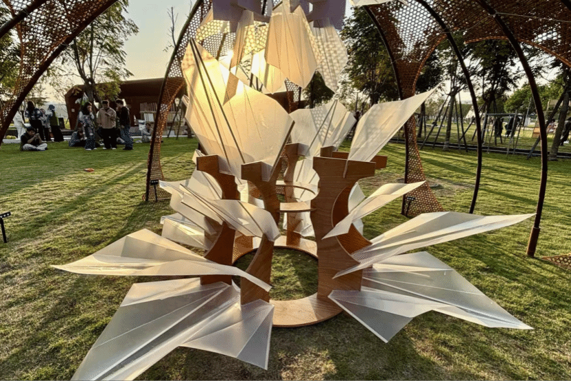 本届大赛以"数智竹韵,境通四海"为主题,实现了"首次落地南方"和"首次走出校园走进城市公共空间"两大突破。参赛团队深度融合数字化设计方法与在地文化元素,运用参数化设计和AI辅助技术,对传统竹艺进行创新演绎。作品以“兰”为魂,以“竹”为骨,凝练“竹韵”的在地表达,装置四面开放、上下呼应,并借“水面倒影”的设计手法完成“镜境合一”,以通达的空间姿态对话世界作品群,以此呼应“境通四海”的宏大主题,与“心境空间·构筑和谐”形成清晰的逻辑衔接。