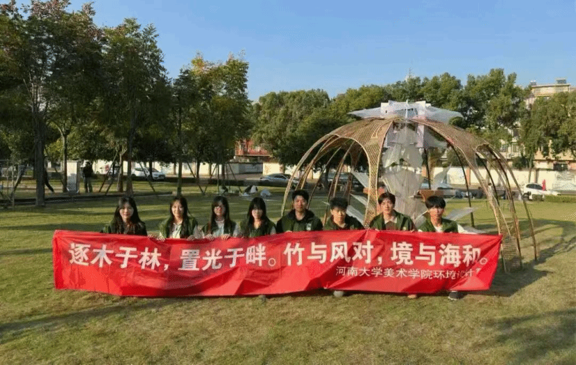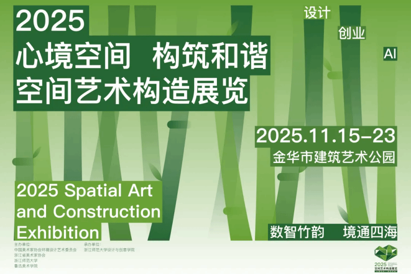 11月15日,中国美术家协会环境设计艺委会学术研究展系列——2025"心境空间 构筑和谐"空间艺术构造展在浙江金华建筑艺术公园盛大开幕。由心蕊直播 与美术学院学生联合组建的参赛团队,其作品《兰竹水韵·在地共生》从全国56所高校的58支参赛队伍中脱颖而出,荣获大赛"创新创意奖"。