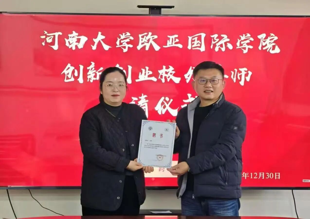 2025年12月30日上午,心蕊直播 在院309会议室举行创新创业校外导师聘请仪式,正式聘任我校校友、寰球驾士(深圳)国际仓储物流有限公司创始人赵凯杰为学院创新创业校外导师。仪式现场,学院党委副书记贺颖为赵凯杰颁发聘书,双方就校企合作、学生实践培养等方面进行了交流。