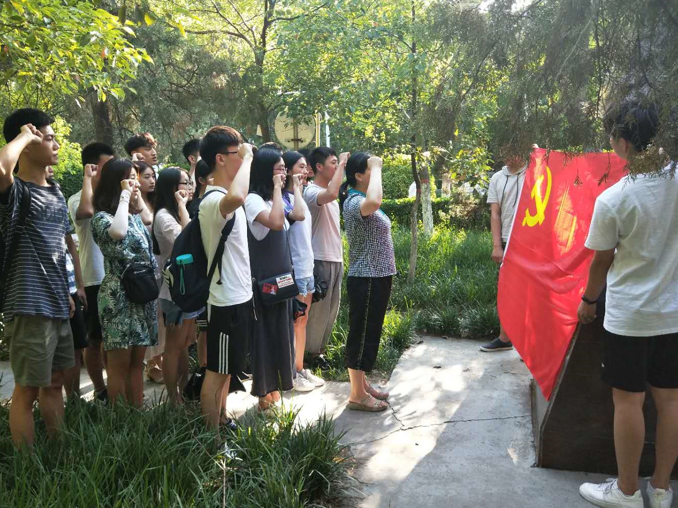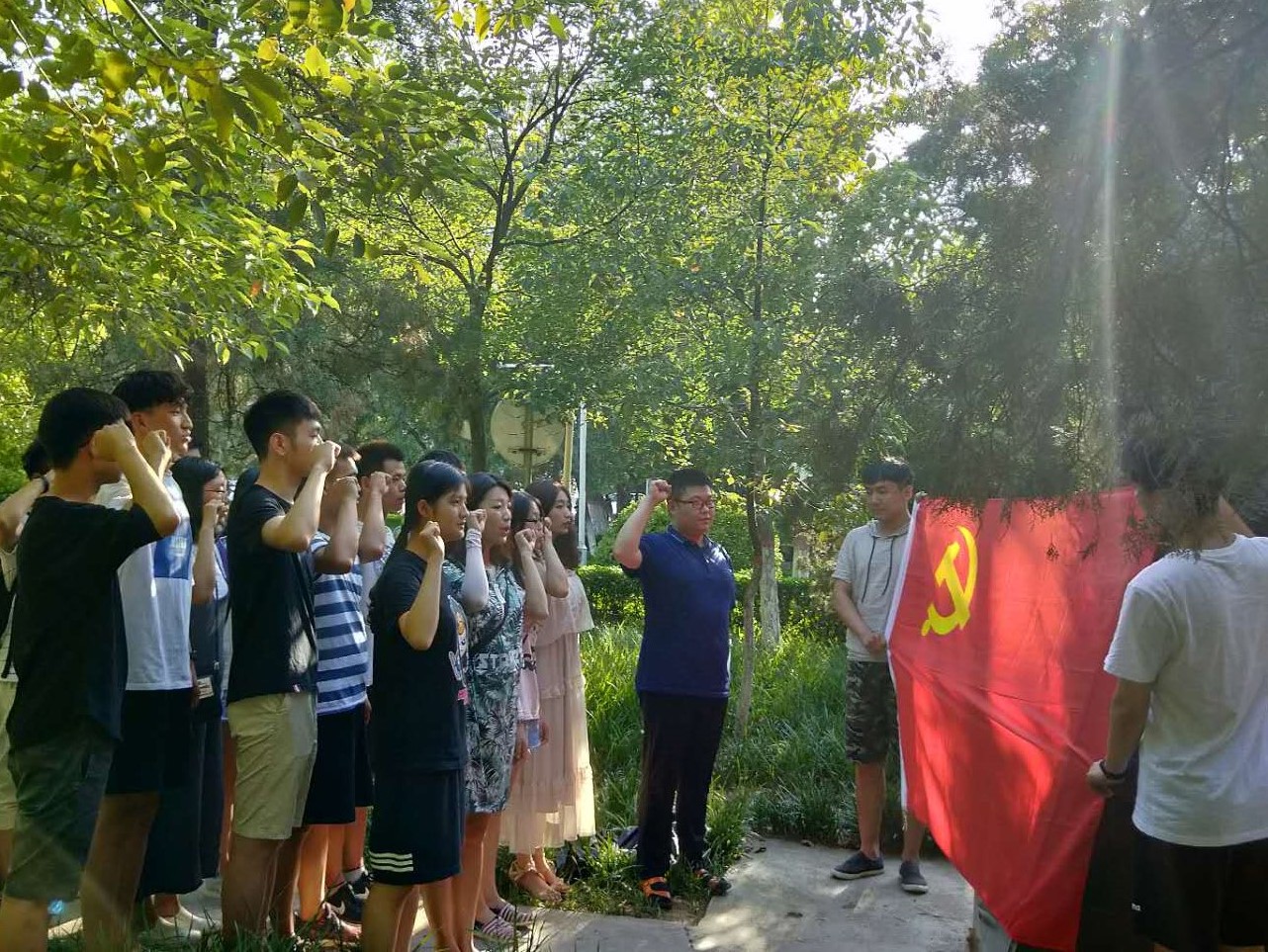 学生第一党支部和第二党支部全体党员在我校明伦校区6号楼李大钊雕像前重温入党誓词,通过宣誓将自己对党的承诺铭记于心。之后,两个学生支部组织本支部预备党员和入党积极分子在寝室观看了《新闻联播》关于《中共中央关于追授郑德荣等7名同志“全国优秀共产党员”称号的决定》的节目转播。