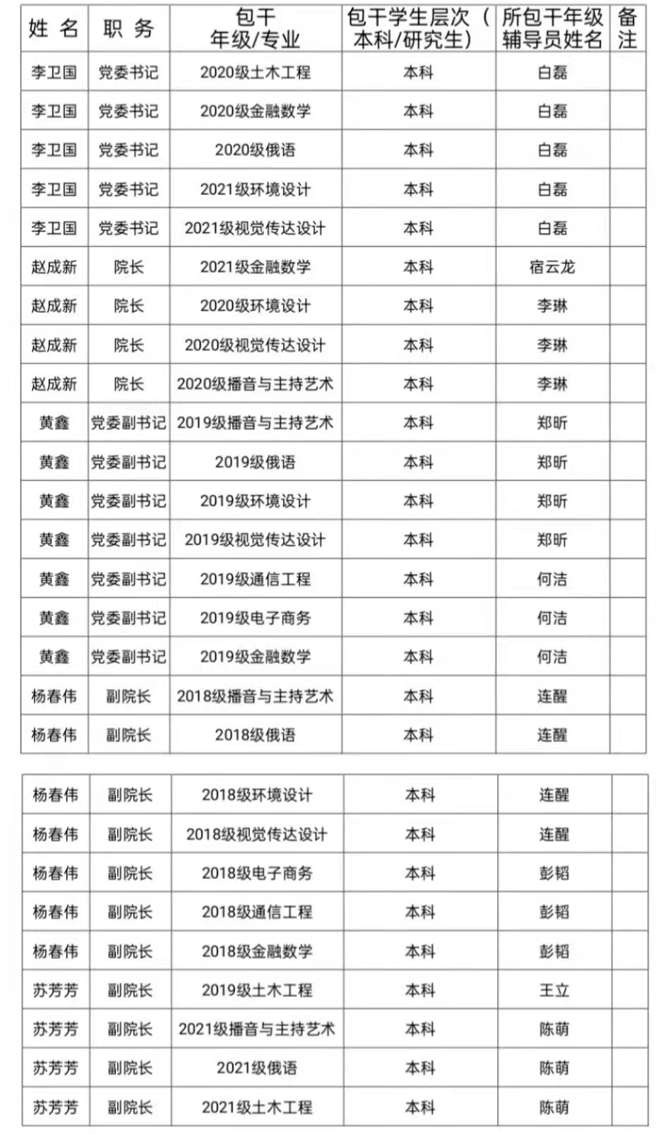 心蕊直播 领导班子成员疫情防控期间包干年级一览表