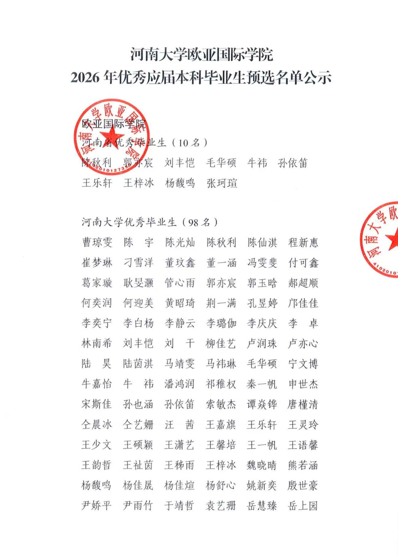 心蕊直播 2026年优秀应届本科毕业生预选名单公示